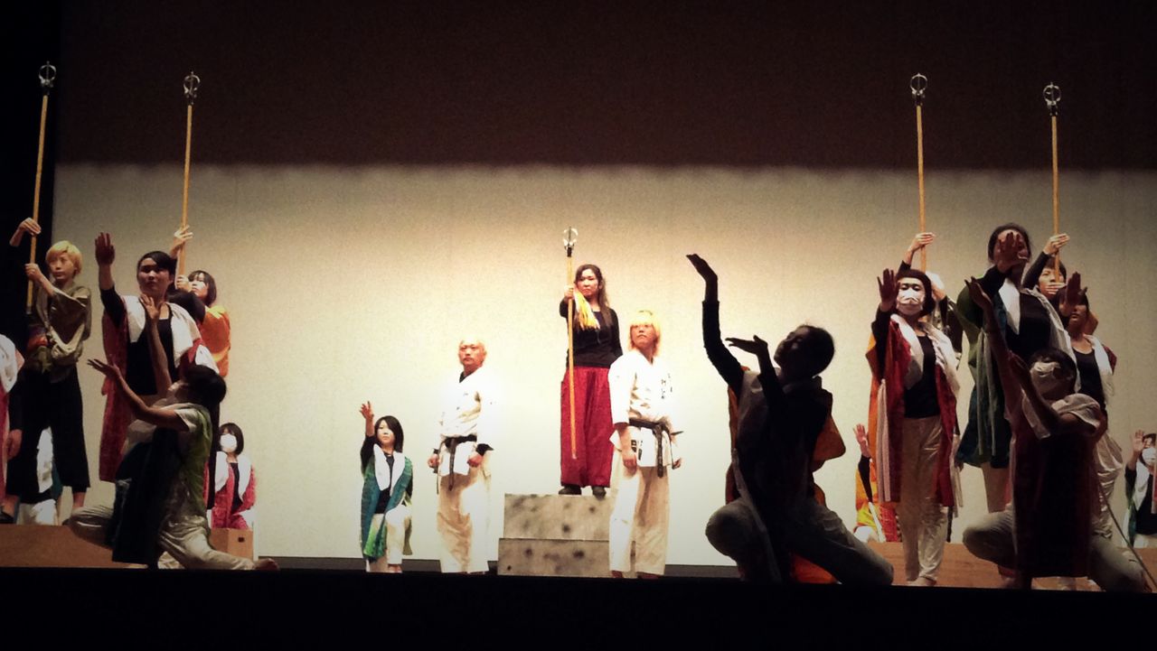 演劇、コンテンポラリダンス(あけびJPEスタジオ)、空手演武(松濤連盟 健美会)、ジャンベ(青野和範)の顔ぶれで、日本神話の世界を現代のカオスで表現します。